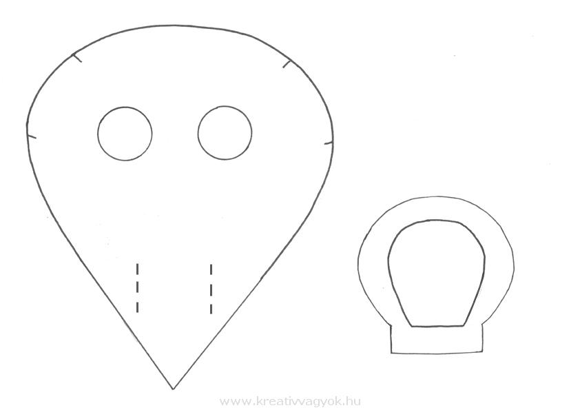 Az fejfedő elejét alaposan ragasztózzuk be, illesszük rá az arcot, majd gemkapcsokkal rögzítsük, amíg megszárad.